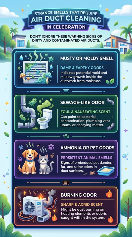 Not every odor has the same fix. Air duct cleaning in Celebration is the right answer for some of what you’re smelling, and the wrong starting point for others. Celebration’s neighborhoods have been standing since the mid-1990s, and their duct systems have been running through Florida’s heat and humidity ever since. Knowing which smell you’re dealing with tells you what comes next.